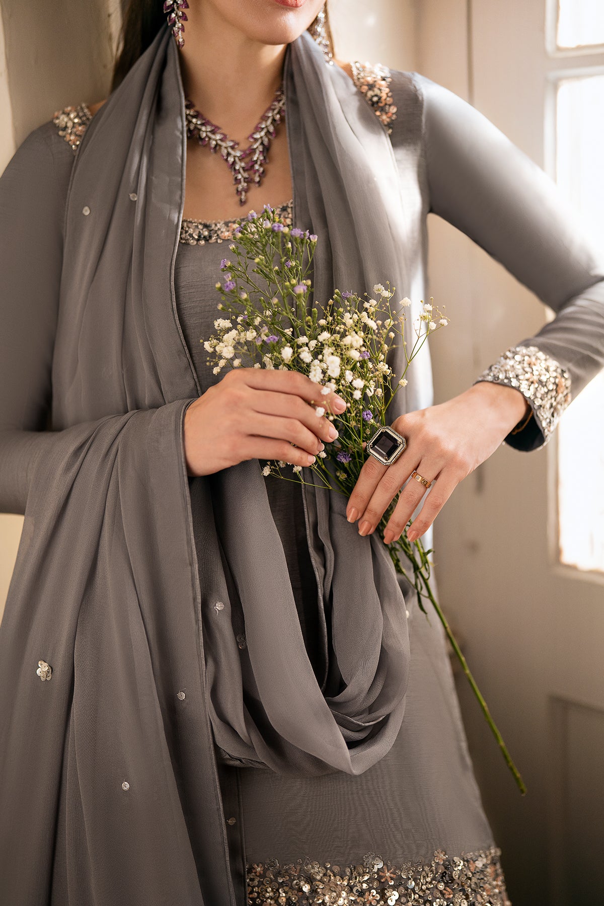 A light chiffon dupatta, scattered with sequins and embroidery, adds the perfect finishing touch — delicate, refined, and endlessly versatile.