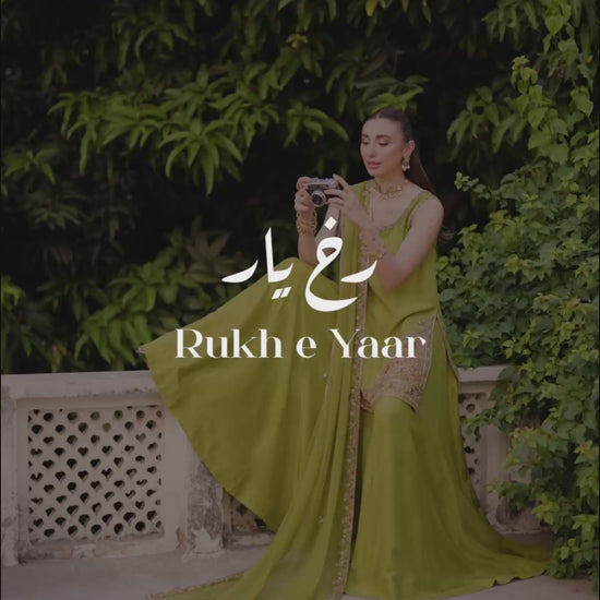 A celebration of colour, craft, and effortless elegance — this fresh green ensemble is an absolute head-turner. The short shirt in premium Korean raw silk is adorned with silk thread marori, tilla, dabka, kora, sitara, nalki, pearl, and french knot work in hues of rust, hot pink, and plum — a perfect bloom of springtime tones.