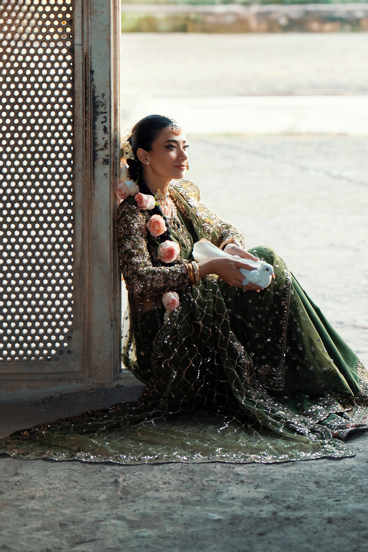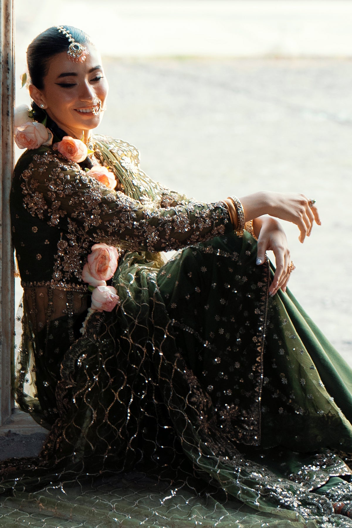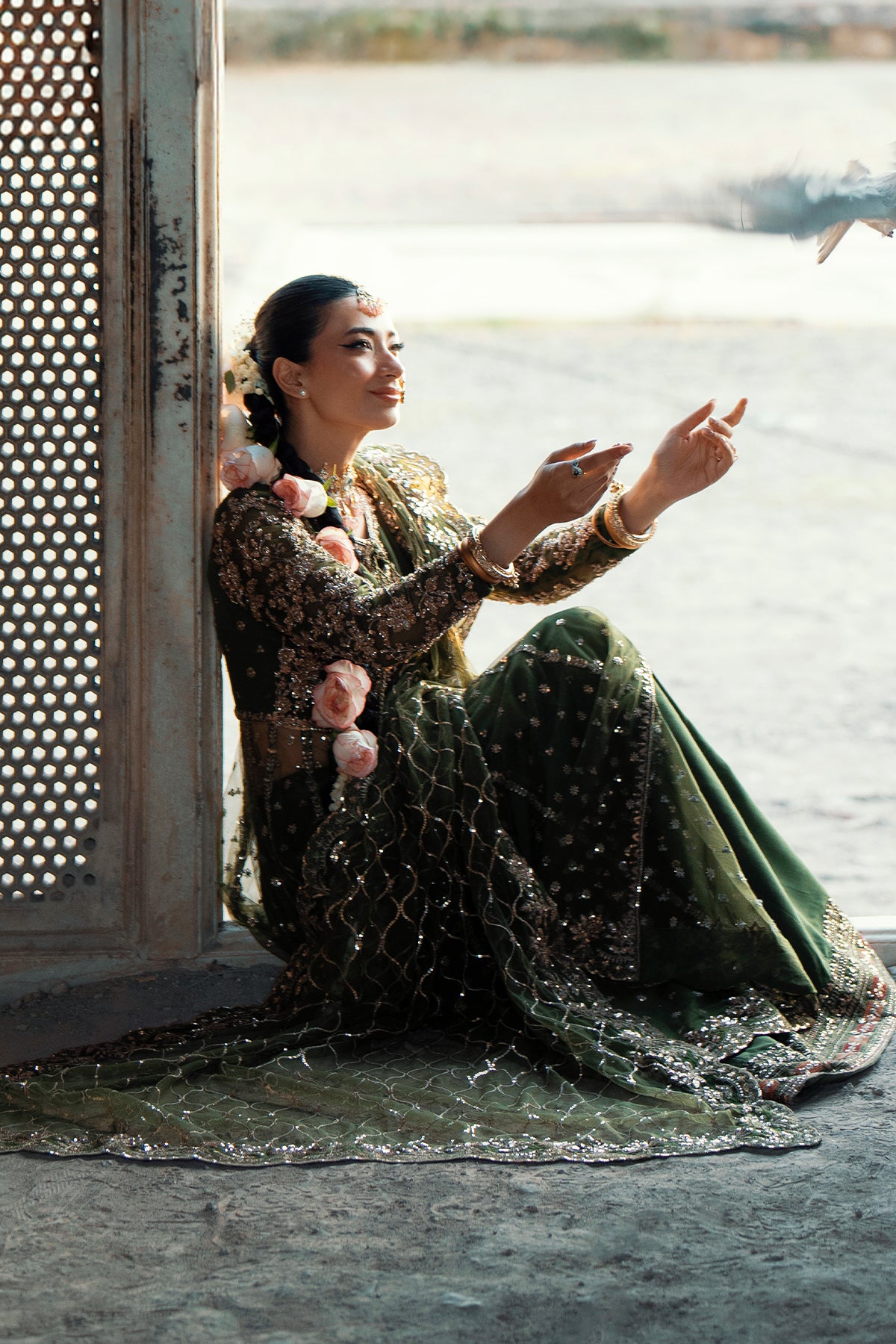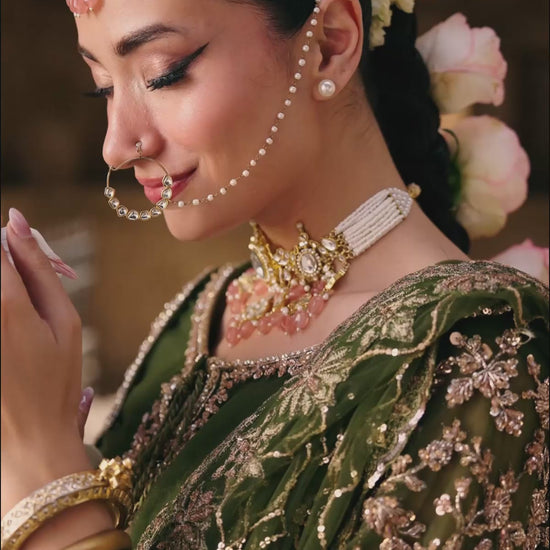 Pair it with fresh pink roses and jasmine in your hair, glowing cheeks, and statement jhumkas — the ultimate dreamy vibe.
